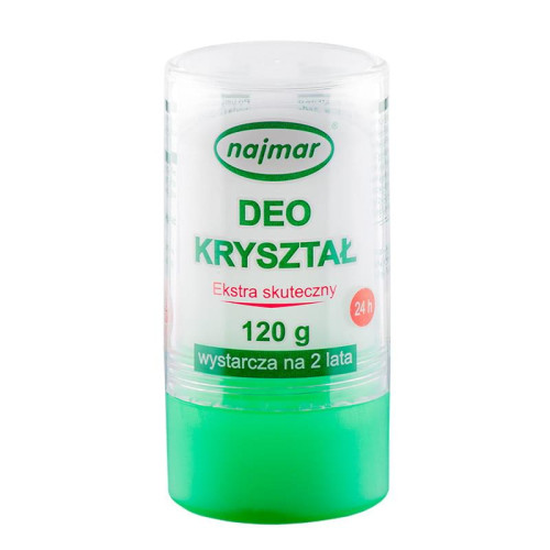 Naimar Дезодорант кристал 120гр. Натуральний мінерал (амоновий алун) ефективно протидіє надмірному потовиділенню і виникненню неприємного запаху. Після нанесення на тілі утворюється невидимий шар, який запобігає розвитку бактерій, які є причиною неприємного запаху. Протестований дерматологами і рекомендований для використання на чутливій шкірі.