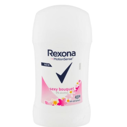 Твердий дезодорант-антиперспірант Rexona Sexy Bouquet із жіночим східним ароматом, у якому вдало поєднані ноти свіжого абрикосу, жасмину, конвалії, магнолії та троянди, забезпечує ефективний захист протягом 48 годин .  Не містить у складі спирту. Дерматологічно протестовано. Для досягнення найкращих результатів використовуйте дезодорант на чистих і сухих пахвах.