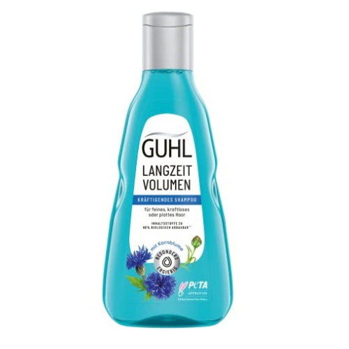 За допомогою зміцнюючого шампуню Guhl Langzeit Volumen Shampoo Ви зможете помітно збільшити об'єм та зміцнити тонке, ослаблене або плоске волосся. Завдяки вмісту у складі екстрактів волошки і рослинного колагену, шампунь відчутно покращить структуру Вашого волосся, відновить природній блиск та наповнить його новою життєвою силою! Шампунь дуже економний - навіть невелика кількість, дозволить отримати максимальний ефект при кожному використанні!