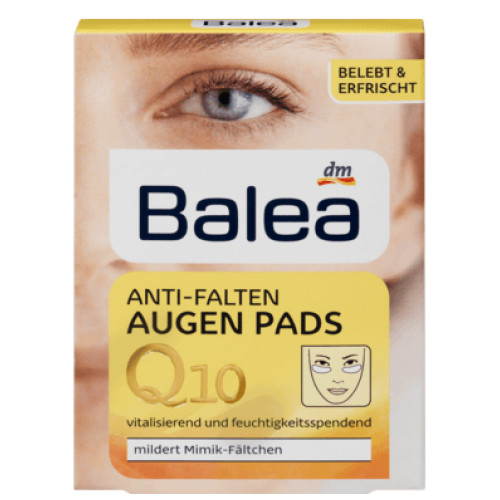 Balea Anti-Falten Augen Pads Q10 Антизморшкові подушки під очі 6*2=12шт. Достатнє зволоження дуже важливе для ніжної ділянки шкіри навколо очей, ці подушечки живлять Вашу шкіру вологою і освіжають її. Жирні кислоти Omega насичують шкіру цінними ліпідами і стабілізують її стан, відчутно покращують глад-кість і еластичність. Зменшуються мімічні зморшки і їх глибина.