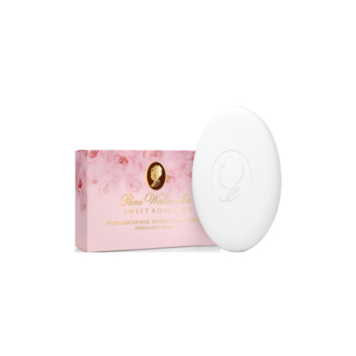 Pani Walewska парфумоване Мило Sweet Romance 100гр. Парфумоване мило утворює густу кремову піну, яка ніжно очищає шкіру. Оригінальна ароматична композиція має відтінок витонченої чуттєвості, тім самим даруючи незабутні хвилини відпочинку при використанні цього мила. Схвалено дерматологами.