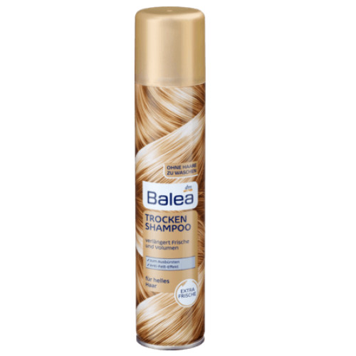 Balea Сухий шампунь для світлого волосся 200мл.  Призначений для сухого миття волосся (без використання води), між звичайними миттями волосся.  Ідеально підходить для використання під час подорожі. Шампунь чудово очищає волосся і завдяки Anti-Fett ефекту усуває його надмірну жирність. Після використання Ваше волосся матиме свіжий, доглянутий вигляд, збільшиться його об'єм і після миття голови не має потреби користуватися феном.