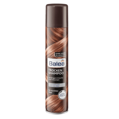 Balea Сухий шампунь для темного волосся 200мл.  Призначений для сухого миття волосся (без використання води), між звичайними миттями волосся.  Ідеально підходить для використання під час подорожі. Шампунь чудово очищає волосся і завдяки Anti-Fett ефекту усуває його надмірну жирність. Після використання Ваше волосся матиме свіжий, доглянутий вигляд, збільшиться його об'єм і після миття голови не має потреби користуватися феном.
