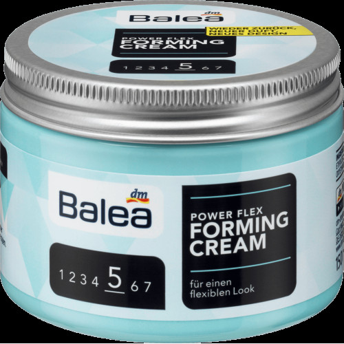 Balea Forming Cream Крем для вкладання волосся 150мл.  Дуже  сильна фіксація. Забезпечує відміне збереження форми і стійкість навіть найоригінальнішої зачіски. Надійна довготривала фіксація - вдало поєднанна, з абсолютною "легкістю" і гнучкістю Вашої зачіски. Ви можете вкладати своє волосся де завгодно і коли завгодно! Крем легко змивається і має приємний аромат. Використання:невелику порцію крему розтирають між долонями. Потім наносять на все волосся (жінці або вологе), або моделюють окремі пасма волосся.