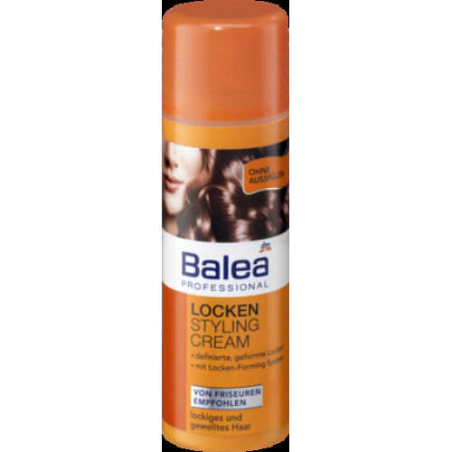 Balea Professional Locken Styling Cream Крем для вкладання локонів 150мл. Для  кучерявого та хвилястого волосся. Крем призначений для оптимального  формування і вкладання локонів, та надання Вашій зачісці неперевершеного  фінішного  дизайну. Система  Locken-Forming надає Вашим локонам  пружність та еластичність. Зволожуюча  формула доглядає за волоссям, зміцнює його і відновлює  блиск.Теплова формула захисту оберігає волос-ся від пересушення.Рекомендовано перукарями. Дерматологічно протестовано. Використання: невелику кількість крему розподіляють по ладонях і наносять,на повністю сухе, або витерте полотенцем волосся і формують дизайн.Не змивати!