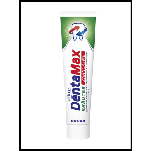 Elkos Denta Max Зубна паста Krauter 125мл. Професійний догляд і активний 3-ох ступеневий захист. За допомогою бізабололу та екстрактів м'яка яті, мирри,шавлії та ромашки паста зміцнює ясна, зменшує їх чутливість та подразнен-ня а також перешкоджає розвитку запальних процесів. При щоденному використанні паста забезпечує 3-ох ступеневий захист від:карієсу(завдяки вмісту солей фтороводневої кислоти-1450ppmF),парадонтозу і зубного каменю. Не використовувати дітям до 6 років.