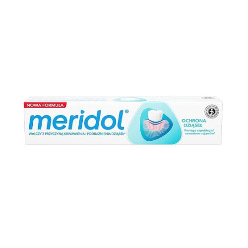 Мeridol Зубна паста для проблемних ясен 75мл. Призначена для щоденного догляду за зубами та ротовою порожниною і сприяє відновленню подразненних та запалених ясен. Зубна паста Meridol містить унікальну комбінацію активних речовин тривалої дії, які пройшли успішні випробування у численних наукових дослідженнях. При регулярному використанні паста відчутно покращує природнє відновлення подразненних та запаленних ясний і таким чином запобігає виникненню будь-яких проблем з яснами. Основною причиною запаленнь ясний є залишки бляшок бактерій (зубний наліт) на зубах у місцях прилягання до зубів до ясен. Meridol знешкоджує ці бляшки і надовго протидіє їх новоутворенню. Спеціальна подвійна система органічних солей фтороводневої кислоти забезпечує ефективний захист від карієсу та цілющий вплив на ясна. Для покращення ефективності догляду, бажано використовува ти зубну пасту Meridol у поєднані із зубного щіткою Meridol і ополоскувачем для ротової порожнини Meridol. Дітям до 6 років, для запобігання помилкового ковтання, чистити зуби тільки під наглядом дорослих і допустимий обєм пасти не повинен перевищувати розмір горошини. При потребі збільшення рівня фтору проконсультуйтесь у стоматолога.