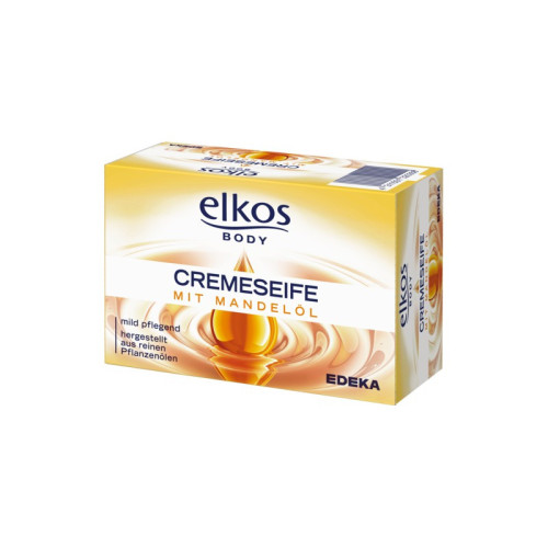 Elkos кремове Мило Мигдальна олія 150гр. Мило виготовлене з складників виключно рослинного походження. Мило м'яка м'яко очищає шкіру рук , ніжно доглядає за нею і покращує її еластичність. Рецептура з вмістом гліцерину і Мигдальної олії дарує приємний аромат і позитивно впливає на стан шкіри рук. Дерматологічно протестовано.