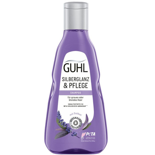 Шампунь Guhl Silberglanz & Pflege з шавлією та рослинним кератином ніжно очищає та живить світле, висвітлене та сиве волосся аж до кінчиків, а також допомагає усунути небажаний жовтий відтінок, який часто проявляється на такому волоссі.