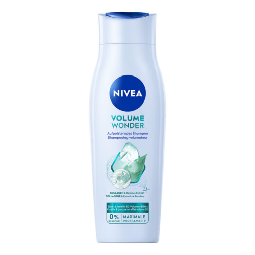 Шампунь Nivea Volume Wonder завдяки своїй спеціальній формулі відновлює та зміцнює тонке волосся. Поєднання колагену та натурального екстракту Бамбука надає волоссю більш видимого об'єму з ефектом 3D. М'яка очищувальна дія забезпечує дбайливий догляд за шкірою голови та волоссям. не обтяжуючи його. Шампунь полегшує розчісування волосся після миття.