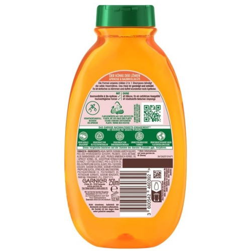Garnier Wahre Schatze Kinder Aprikose & Baumwollblüte Shampoo - це спеціально розроблений продукт для догляду за дитячим волоссям. Його формула створена з особливою увагою до дитячої шкіри та волосся, забезпечує ніжний і ефективний догляд, не подразнюючи при цьому очі та не обтяжуючи волосся.