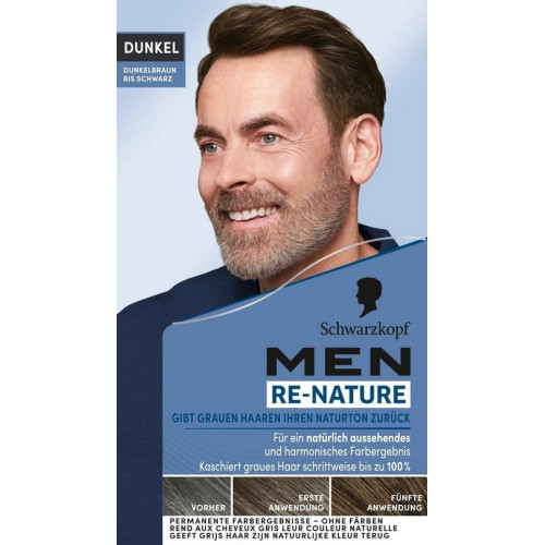 Schwarzkopf Re-Nature Засіб від сивини, для чоловіків, у яких природній колір волосся від середньо-коричневого до чорного.У комплект входить: 2 тюбики (по50мл.) відновлюючого крему; 2 пакети (з 22,5 мл) спеціального шампуню; інструкція для використання засобу.