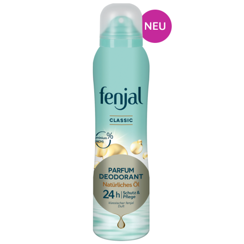 Антиперспірант-спрей Fenjal Classic забезпечує 48 годин ефективного захисту від неприємного запаху поту та небажаної вологи під пахвами. Популярний та самобутній аромат Fenjal Classic,  подарує Вам тривале відчуття свіжості. Збагачена цінною натуральною мигдалевою олією та заспокійливим алантоїном, формула догляду допомагає чутливій шкірі під пахвами швидше відновлюватися та повертає їй доглянутий вигляд. Високоефективна формула також захищає темні тканини від білих слідів, а білі тканини - від жовтих плям.