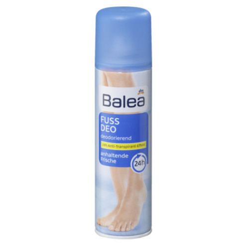 Balea Дезодорант для ніг 200мл. Забезпечує ногам приємну гігієнічну свіжість на протязі цілого дня і усуває неприємний запах. Містить активні речовини, які відчутно зменщують потовиділення, а також дизінфекційні компоненти, які знищують шкідливі бактерії. Ментол захищає шкіру від втрати вологи. Увага:не використовувати на маленьких дітях і не допускати попадання в очі. Виготовлено у Німеччині.