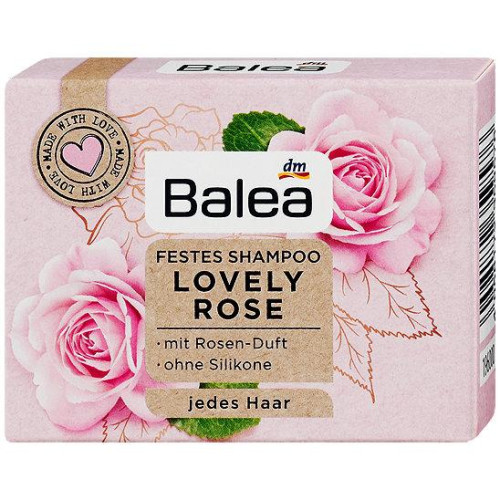 Balea Твердий шампунь для всіх типів волосся Lovely Rose 60гр. Твердий шампунь Balea Lovely Rose з ароматом троянди. Ніжно очищає Ваше волосся, покращує еластичність не обтяжуючи його.