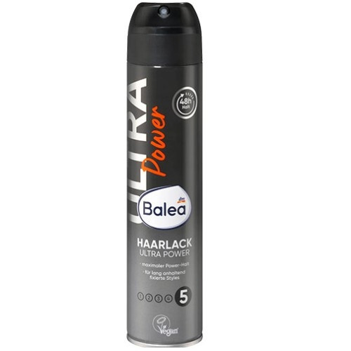 Balea Haarlack Ultra Power це лак для волосся, який доглядає за волоссям, освіжає його і забезпечує максимально довготривалу (до 48 годин) і сильну фіксацію на кожен день. Лак не злиплює волосся і легко вичісується після використання. Містить у складі UV-фільтр і доглядаючі вітаміни. Використання: рівномірно розпилюйте лак і на волосся з відстані приблизно 30 см. Для підкреслення акцентів на зачісці: розпилюйте по всій довжині окремих пасом волосся. Дерматологічно протестовано.